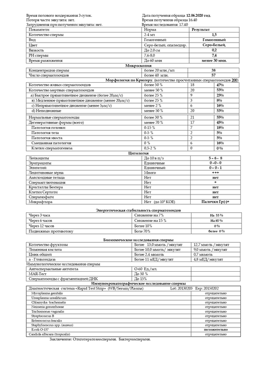 Анализ никак не связан с зб, если вы боитесь изза терато..., то не стоит, если зачатие есть, терато уже вообще не диагноз. Вы же не делали днк фрагментацию сперматозоидов, только там можно увидеть дефектный или нет набор хромосом несет спермик, моофология это просто внешний вид сперматозоида, может красавец быть с неправильным набором хромосом, а некрасивый абсолютно генетически здоровым. Причин зб миллион. И их не узнаешь точно. Поэтому не парьтесь, ждите сл узи. Знаю сложно... Сама такая)