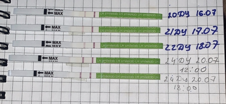 Два дня не делала тест на овуляцию и сегодня сделала и выдал две полоски , сегодня 24 дц , в среднем цикл до 38-39 дней ...В прошлом месяце была поздняя овуляция и цикл 60 дней ...