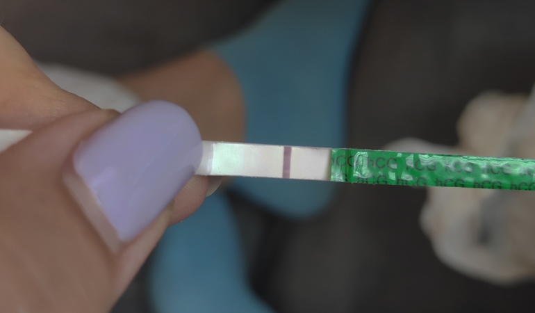 Сделала тест. Ну вот совсем ничего не увидела, фото не делала. Положила в бумажку, свернула ее. Через несколько часов достала ещё раз на всякий случай посмотреть, и вот, результат на фото..... Это Qtest