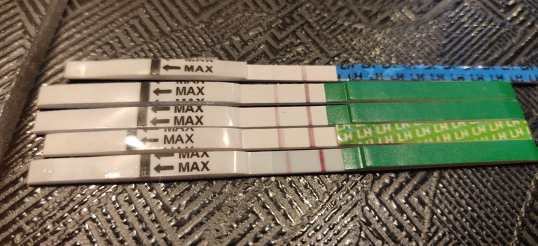 На 3-м тесте на 12день у вас был выброс лг, этот тест у вас положительный, вот от этого теста прибавляйте 12-48. А то что они яркие несколько дней это уже не имеет значения, вам это и по узи подтвердили.