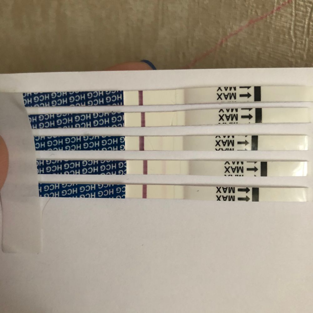Вот вам 5 Фрау и 1 Эвик, замоченных в одном стакане! Видите интенсивность разная какая? Просто на заводе где больше бухнут, где меньше реактива. Не заморачивайтесь. Полоски есть, дальше анализы и УЗИ.