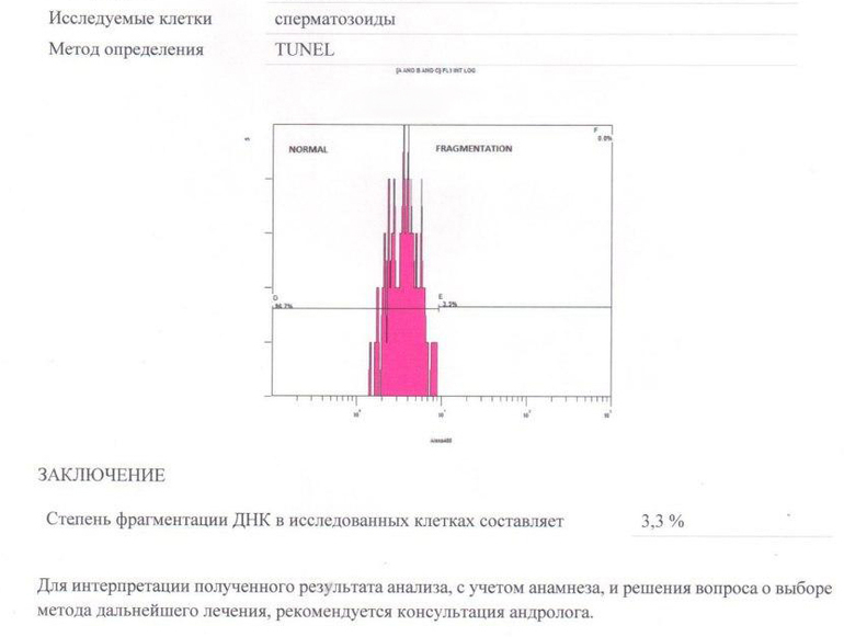 ДНК-фрагментация - 3,3%. Это порадовало. Я выдохнула.