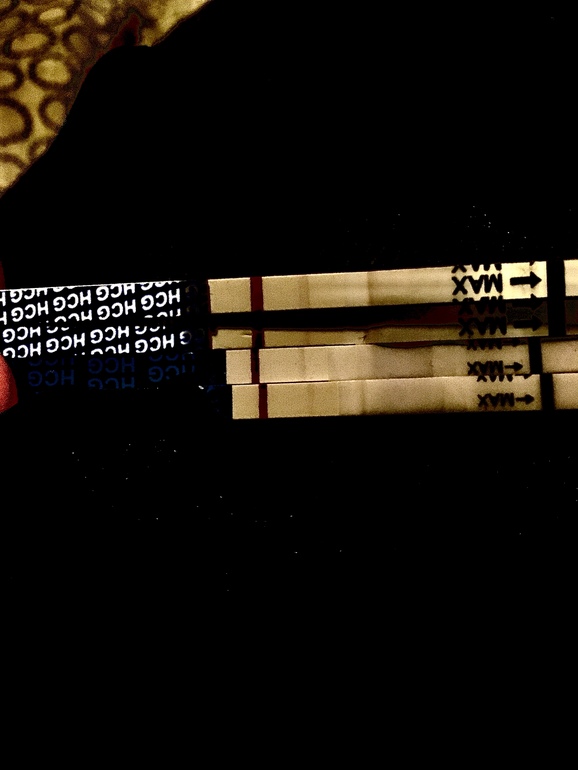 Нижний тест сделан утром на 16 ДПО, уже был бы жирненький, а не еле заметный(