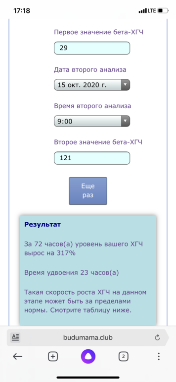 первый калькулятор мне тоже неправильно считал время удвоения и всегда писал, что рост за пределами нормы. Вот моя динамика: 11 дпо - 7713 дпо - 15819 дпо - 202425 дпо - 895731 дпо - 29750