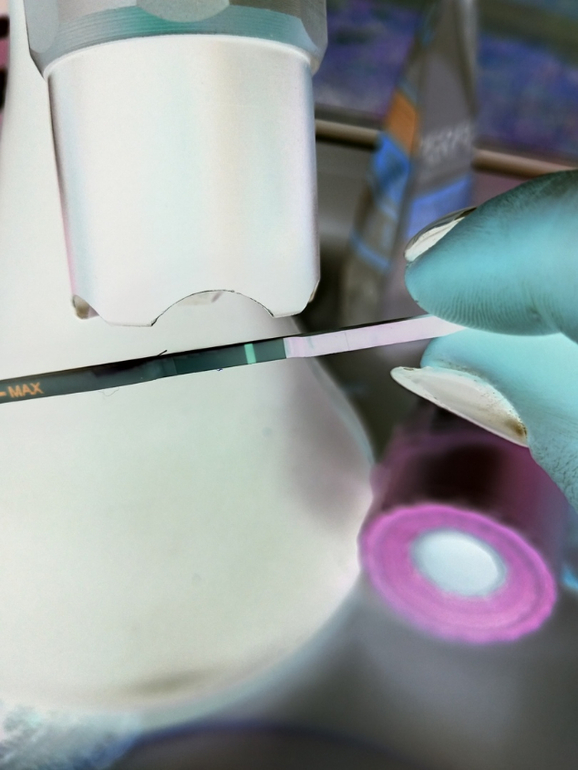 Нет смысла подсвечивать тест сзади,на некоторых место для полоски просвечивает,за 7 лет тестомании не одну тысячу тестов со всех сторон просвятила,надо сверху светить на тест,беременный призрак как розовая тень видна тогда,а если ничего не видно,то ничего и нет