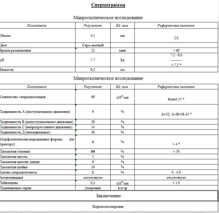 Полгода назад делали спермограмму, подвижность на нижней границы нормы, морфология по Крюгеру 4% (неплохо, но мой гинеколог говорит поднимать и ее смущает большой процент патологии головки спермиков).