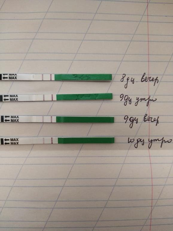 9 (утро) самый яркий положительный тест, значит овуляция была 10-11. Наверное )