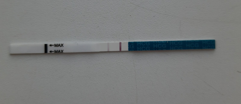 Не видела другие тесты, но это очень похож на реагент, сделайте ещё пару разных и будет ясно. У меня такой же был, полоска немного не доходит до верха, и когда высыхает становится тонкой