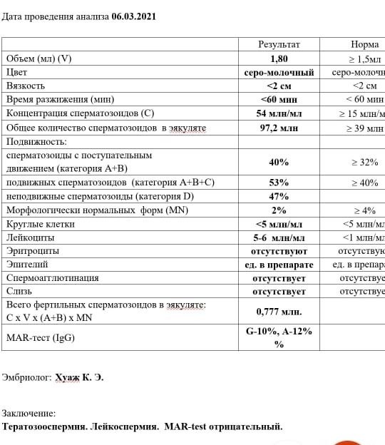 Линия Жизни, спасибо за ответ. Сдавали в Нова клиник. будем обследоваться дальше и пересдавать. В настоящий момент Есть воспаление по проктологии , но вряд ли же это так сильно могло повлиять на спермограмму.