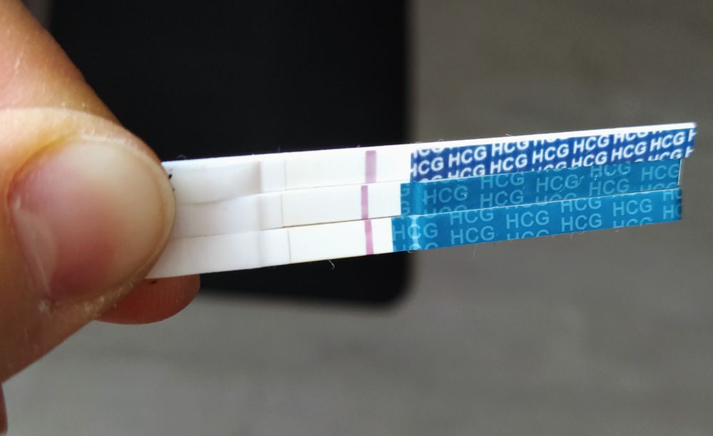 Второе фото через 20 минут. Сверху вниз 8дпо - 9дпо - 10дпо.