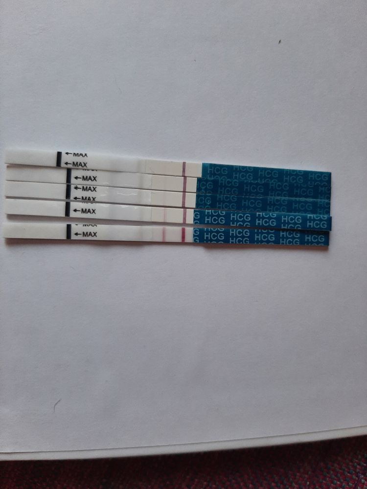 Ну и прикрепляю фото тестов для красоты, без дневного непонятного. Первые два это 9-10 дпо и хгч 12. Остальные по одному в день и последний сегодняшний утренний, 12-13 дпо получается.