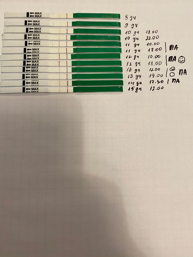 Овуляция( тесты на овуляцию)Девушки, добрый день! Подскажите фирму тестов на беременность, хороших и проверенных, которые относительно рано показывают результат и не реагентят. У меня сейчас 15 дц, судя по всему овуляция была на 13 дц, там где смайлик - это ещё тест от клеарблю, вечером 12 дц и утром 13 дц он улыбался, вечером 13 дц уже нет. И на какой дц лучше делать тест? (прошлый цикл был 34 дня, сейчас второй цикл после отмены ок)