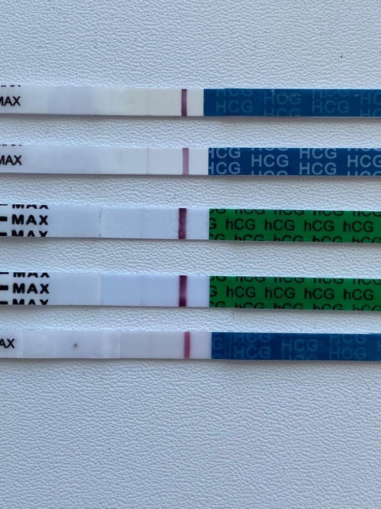 В эту беременность я не ходила на ХГЧ,думаю будь что будет,от меня ничего не зависит. Просто сделала тест один раз полоску,а второй клиа на память. Всё. Потом в 5 недель и 6 дней было УЗИ,пошла бы позже, если бы ЛЯ не заколол в тот день)