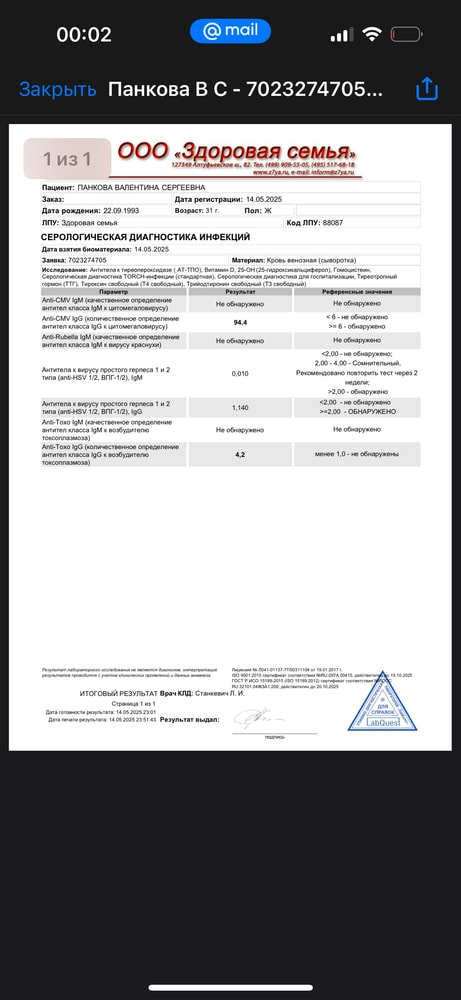 Lolita, а у вас высокие антитела к этой болячке ? Просто смотрю к краснухе и к цитомегаловирусу высокие , а к токсо нет