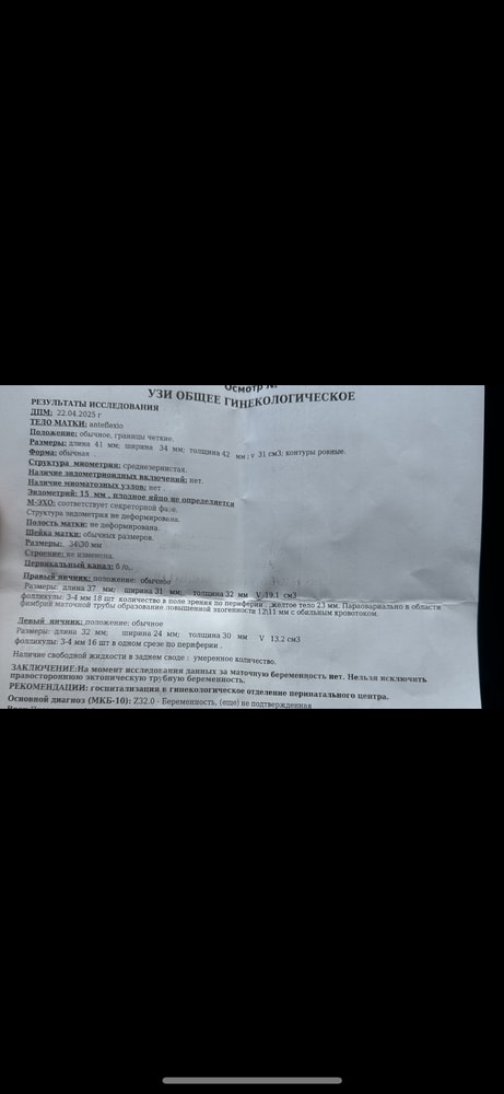 Внематочная беременностьХгч сдала сегодня будет готов завтра, пошла на узи так так большая задержка, и всю неделю бледная вторая полоска, клиар блю показал 1-2 недели. Но на узи сказали что похожа на внематочную, завтра еду в стационар. УЗИ прикреплю , Как вы думаете внематочная или может быть малый срок?