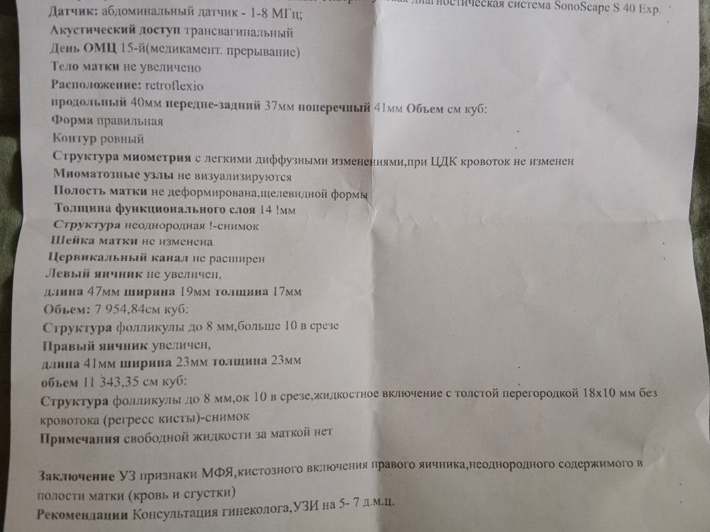 Доктор УЗИ сказала ждать следующего цикла, возможно все выйдет, либо идти к доктору и она назначит препараты...