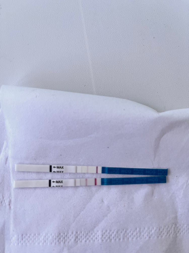 Маша, если на тестах на о полоска еле заметная то тест отрицательный, вообще на таких тестах всегда есть вторая полоска, так как гармон у нас в крови всегда, а когда перед о, его концентрация повышается тест ярчает, те вторая полоска ярче контрольной.