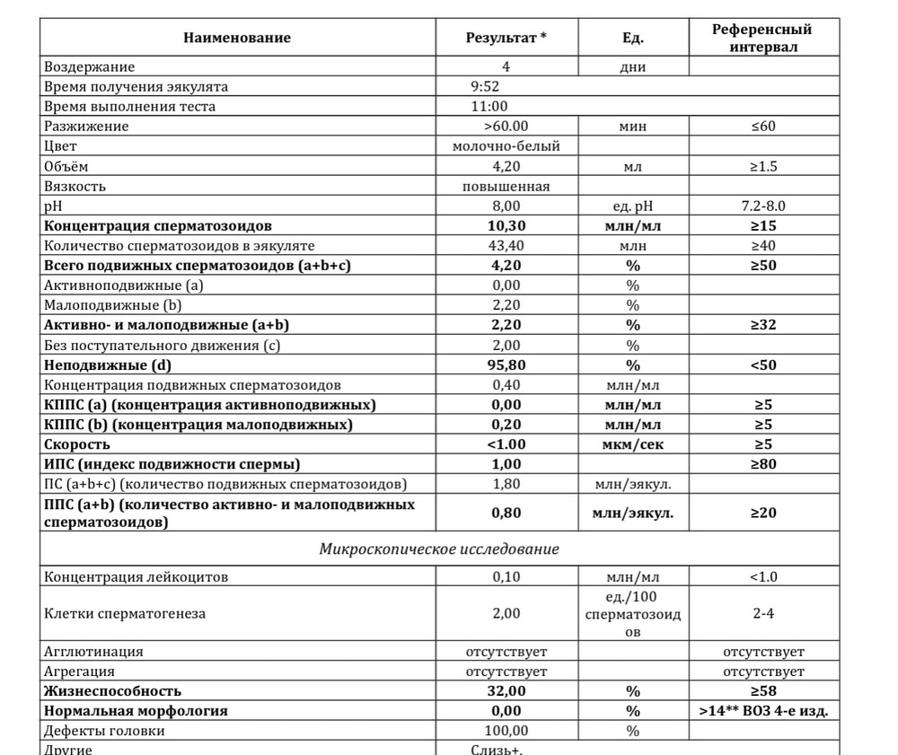 сг /анализы/ обследования для мужчинДоброе утро. Нам по 24 года, сдал супруг Спермограмму и получили вот такой результат. Подскажите пожалуйста, есть ли шанс на ЕБ с такими результатами? Спасибо!