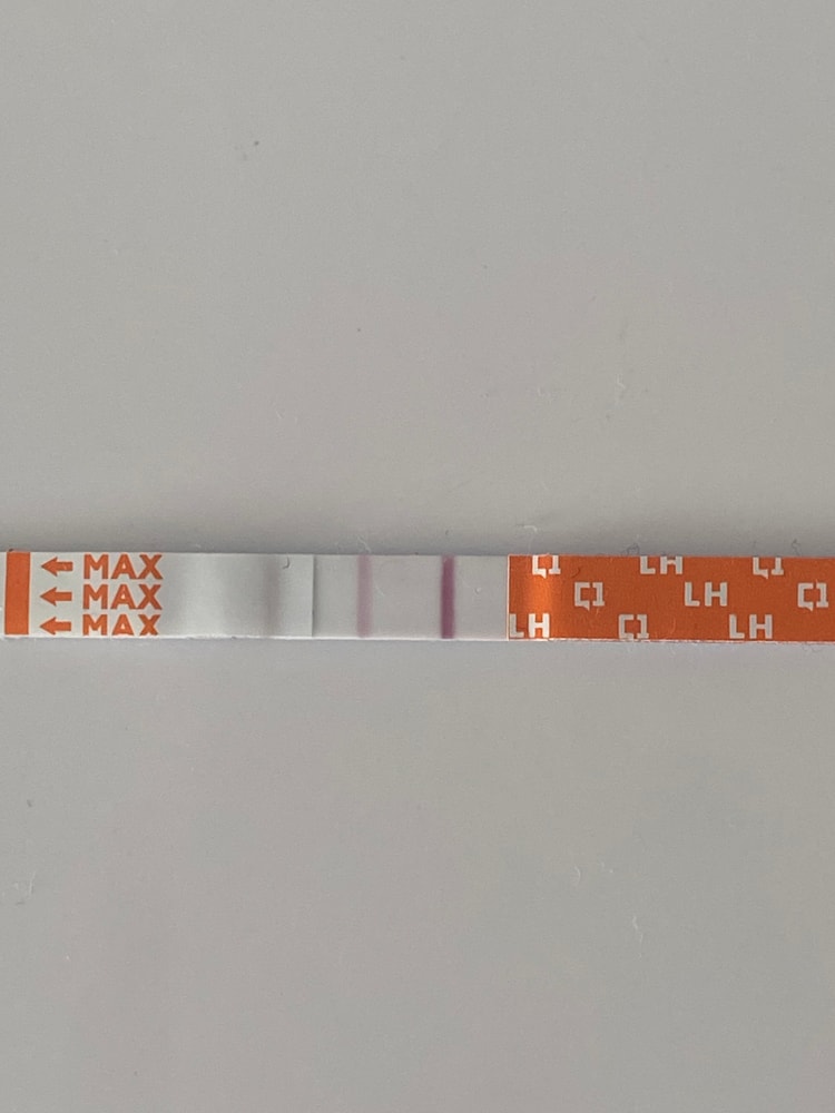 Овуляция( тесты на овуляцию)Дано: спкя, нерегулярные циклы, из которых бывают ановуляторные. Крайний цикл 38 дней. Сейчас идёт 11 дц, тянет спину, яичники чувствую, правая грудь ноет. Похоже на признаки овуляции. За все время решила первый раз поотслеживать овуляцию тестами. Ещё позавчера была совсем слабая полоска, даже фотать не стала. Сегодня сделала, появилась такая.