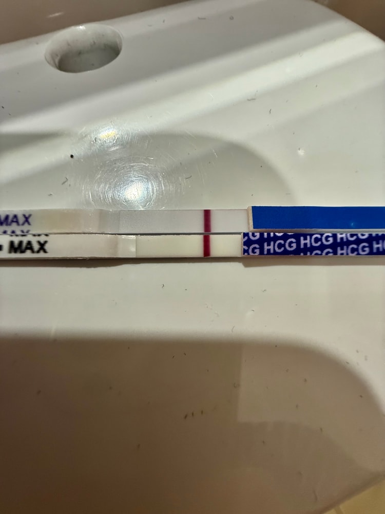 что имеем на сегодняшний день ? Снова невнятные полоски и полное отсутствие других симптомов- ничего не болит, не колит, не кровит, только под вечер немного тянет поясницу