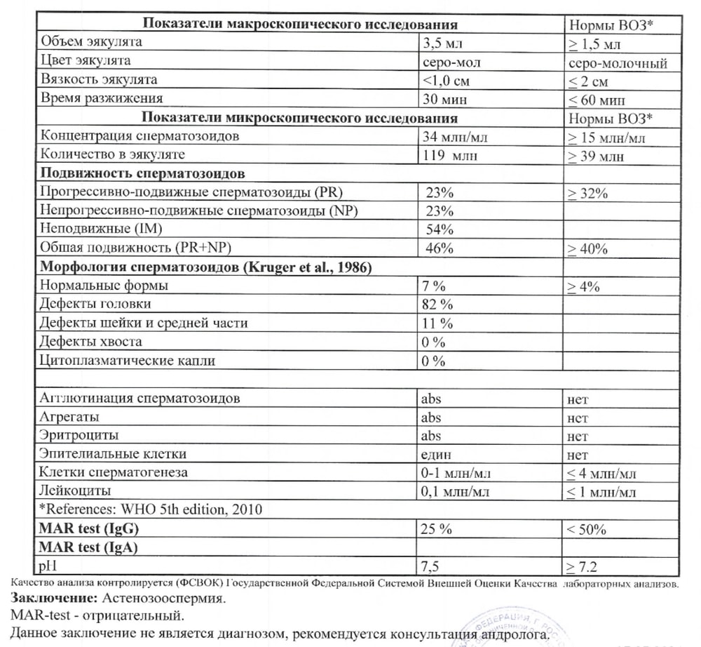 Анастасия, я сейчас точный диагноз не назову, не помню. Но там у нас и днк фрагментация и морфология, и подвижность. Целый набор был. Для оплодотворения отбирают самых шустрых, красивых спермиков.