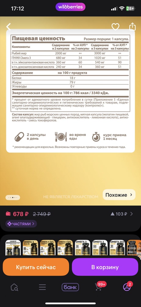 Софья, вообще в карточке товара в противопоказаниях не было указана беременность, а на банке я посмотрела только сегодня, там написано беременность как противопоказание. И вообще, с утра меня сегодня смутило в приложении беременность + высветилось надпись, что следует исключить из рациона рыбий жир, и я задумалась и давай искать все и пришла к такому выводу, что возможно в этом рыбьем жире есть витамин А, что нельзя беременным. 🤷‍♀️