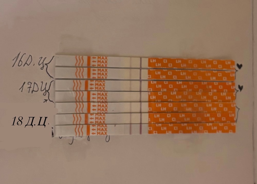 Овуляция( тесты на овуляцию)Пик? Обычно овуляция у меня была ранняя, на 9-10 д.ц. сейчас очень сильно сдвинулась из-за болезни, думала будет пролет. Что думаете? Есть шансы забеременеть с такой овуляцией?