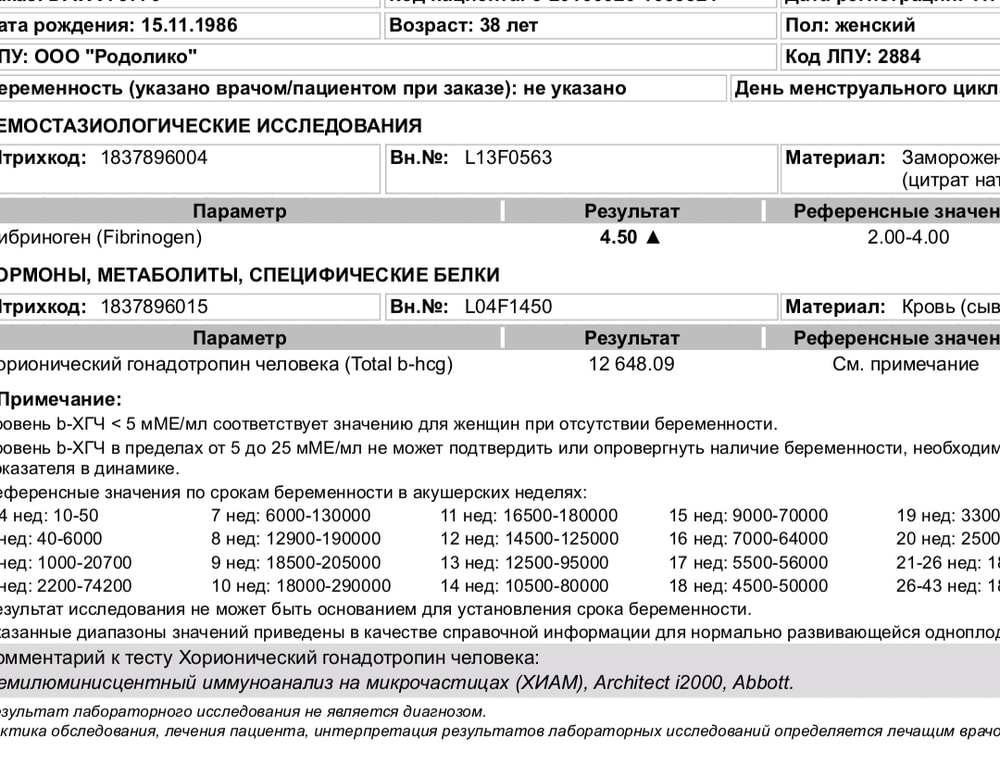 У меня пять недель и два дня беременности. Является ли высоким фибриноген?