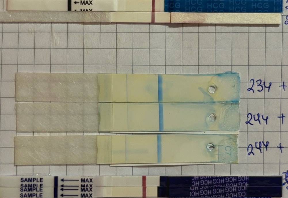 Эви с тенями теней, ниже Qtest струйный, далее два вида клеа и ниже магнит тест. Ну неужели так много тестов могут быть с видными мпп и на столько, что появляется в течение 3 минут полоска!