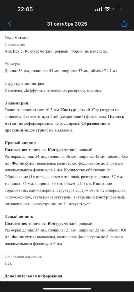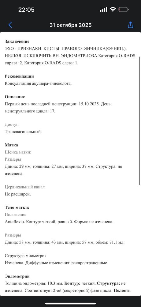 В сентябре делала узи, все было отлично, ни кисты, ни эндометриоза.
