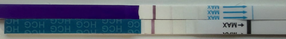 Первый день М был 12 ноября. О думаю где-то 27 +- 1 день. Первое фото сделано вчера вечером. Второе сегодня утром. Есть шанс что это беременность?