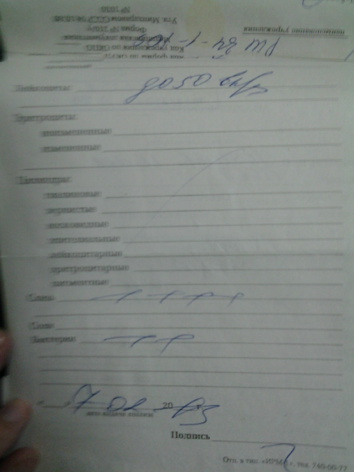 лейкоциты до 50-70 в поле зрения, протеинурия 0,15 г\л, слизь в большом количестве. бактерии в умеренном количестве