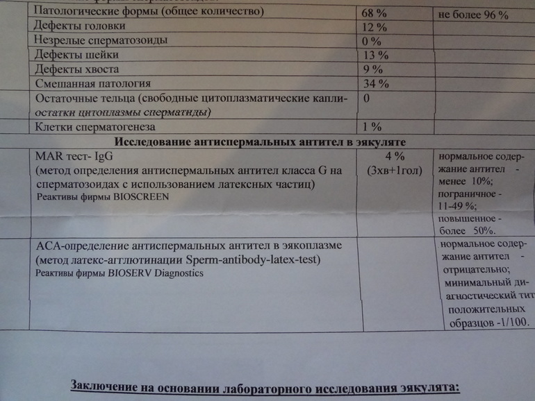 В представленных данных нарушения витально-морбидных показателей спермограммы я не заметил