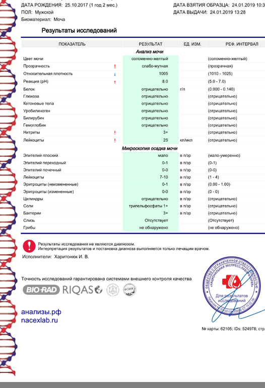 Максим Викторович, здравствуйте! Я вам писала в предыдущих сообщениях про следы на памперсах, сегодня сдали мочу, посмотрите пожалуйста результат