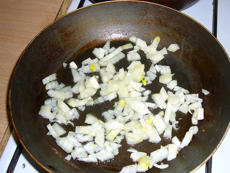 2. Начинка. Мясо пропустить через мясорубку и обжарить с луком (1 луковица) на сковороде, добавить соль, перец, специи и тушить вместе с водой или бульоном до выкипания. Помидоры ошпарить, снять шкурку, растолочь до пюреобразного состояния. Лук (1 луковица) порезать, обжарить, добавить пюре из помидоров, чеснок, петрушку, базелик.