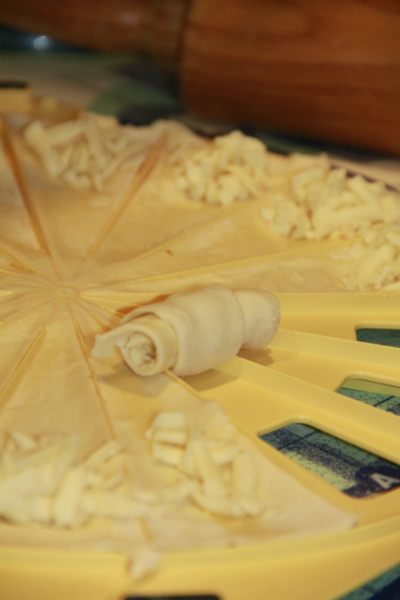 Круассаны получаются маленькие (на один-два укуса), поэтому хорошо и быстро пропекаются и лепить удобно.