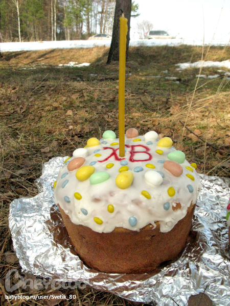 Пасхальные рецептыДевочки, добрый день! В этом году первый раз пекла куличи. Как же это оказывается трудно, переживательно и долго!!! Торты я пеку быстро и с удовольствием, а тут дрожжи, опра, взойдет не взойдет, да еще три раза... вечером я с ног валилась, но главное- все удалось!!! Сегодня освятили в церкви и поехали погулять на природу, а я там поснимала мои куличики, еле уберегла, чтоб не слопали. Вот они, мои первые, с трудом мне давшиеся куличи!