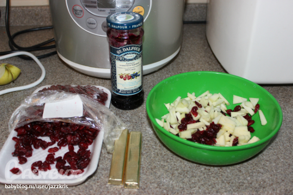 я очень люблю кислые начинки - поэтому кислое яблоко с сушеной клюквой и никакого сахара!