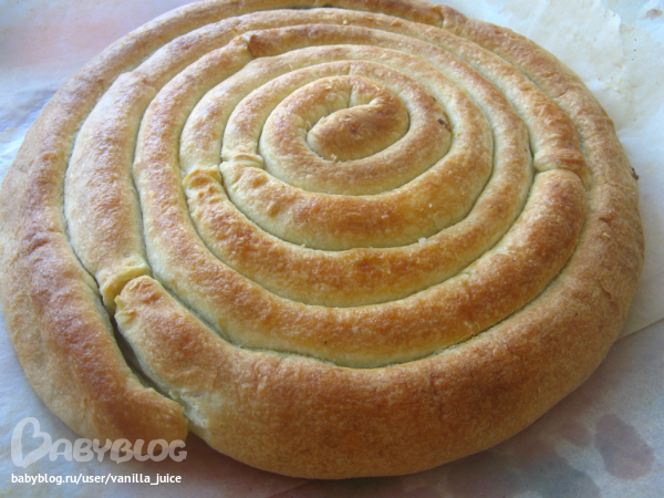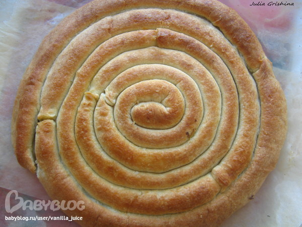 Пирог из слоеного дрожжевого теста. Начинка - лук с яйцом и капуста с яйцом (его там немного).