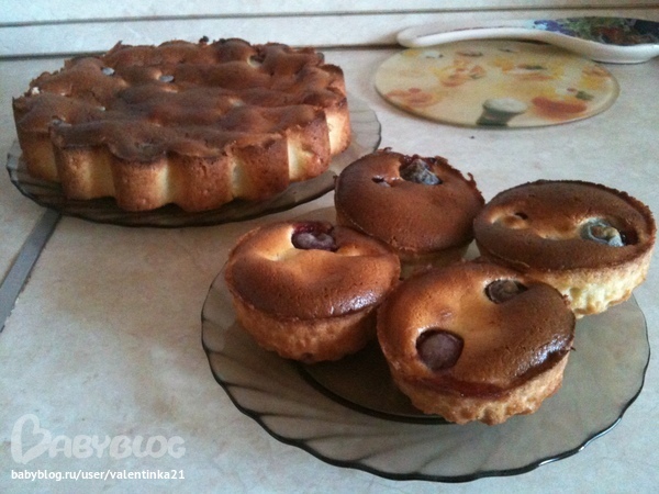 Это с вишней, делала с косточками, переживала, что потечет, можно без них, тесто держит.