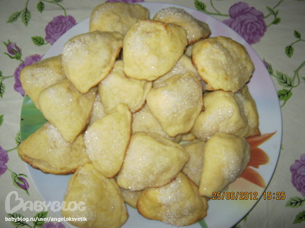 Творог,яйцо и масло(маргарин)смешать.Добавить 1,5 ст. муки.Готовое тесто разделить на 23-25 шариков.Каждый раскатать,посыпать сахаром,свернуть попалам,снова посыпать сахаром,снова свернуть попалам.Верх посыпать сахаром.Изделие уложить на противень,смазанный маслом и поставить в холодное место на 30 мин.Выпекать на слабом огне в духовом шкафу 20-25мин.Вот что получилось)))
