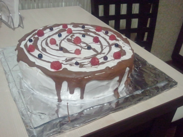 Безе, с 0,5 см где-то намазывала, может чуть меньше. Думала когда буду резать крошиться будет, к счастью этого не произошло, резался замечательно.