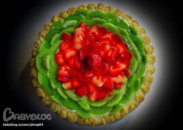 Выложить ягоды, фрукты по своему желанию на крем и сверху полить желе) (Я использовала желе для торта быстрозастывающее)