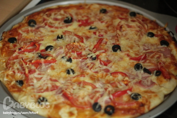3 стакана холодной воды, чуть соли и сахара, ложек 5 столовых оливкового масла, чайная ложка дрожжей, все смешиваю и ввожу муку, столько, сколько возьмет, прям как на пельмени. Теста очень много нанашу семью выходит, поэтому мне на 3 такие пиццы хватает. я делю тесто на 3 части, 2 части по разным мешкам и замораживаю)