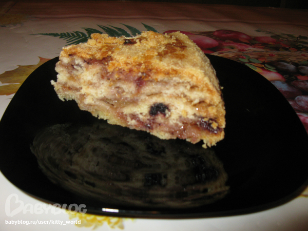 Перым блюдом стал насыпной яблочный пирог. Как изестно, первый блин комом - подтерждаю))) Пирог вышел сухой и вообще малосъедобный... Вчера повторила испытание, и - о,чудо! - пирог получился!! Сочный, вкусный, прям мячта)))