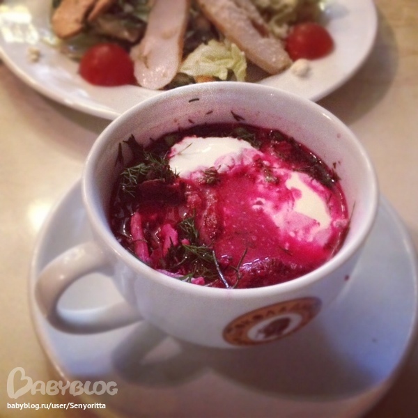 Первые блюдаДевочки ела на бизнес ланч сегодня холодный суп Свекольник,