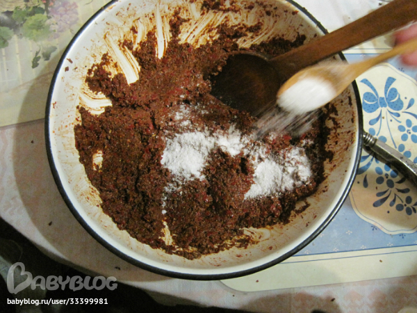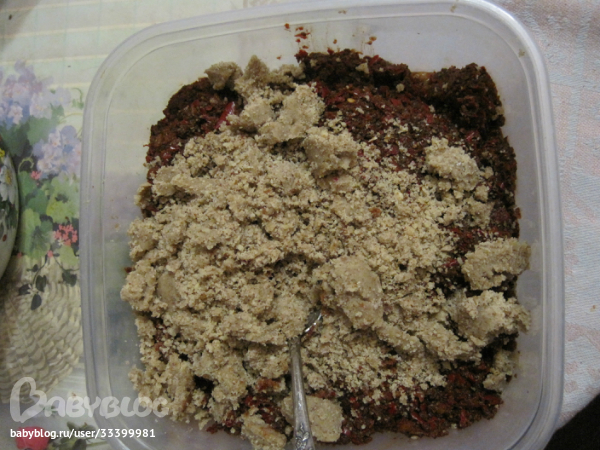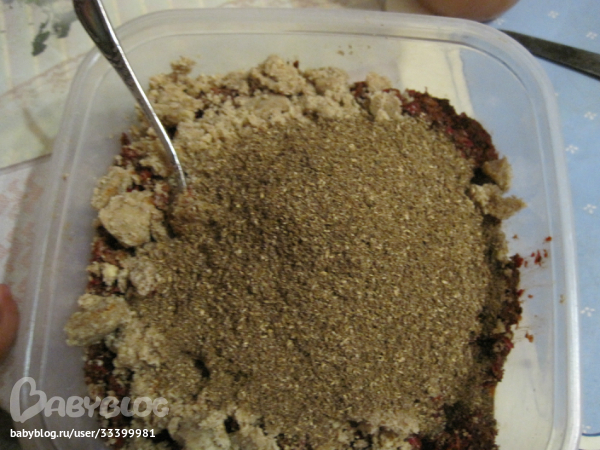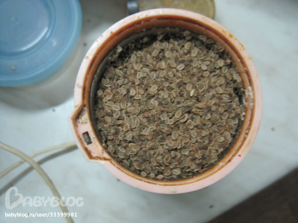 Перемалываем до однородности на кофемолки. Т.к. Тетушка делает ее уже лет 15, то у нее под это дело отдельная кофемолка, т.к. специи и кофе не совместимы)