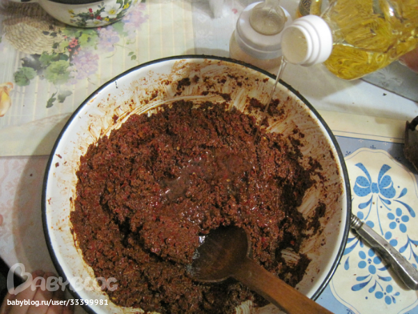Выкладываем его в миску в которой будем собирать и мшать аджику.