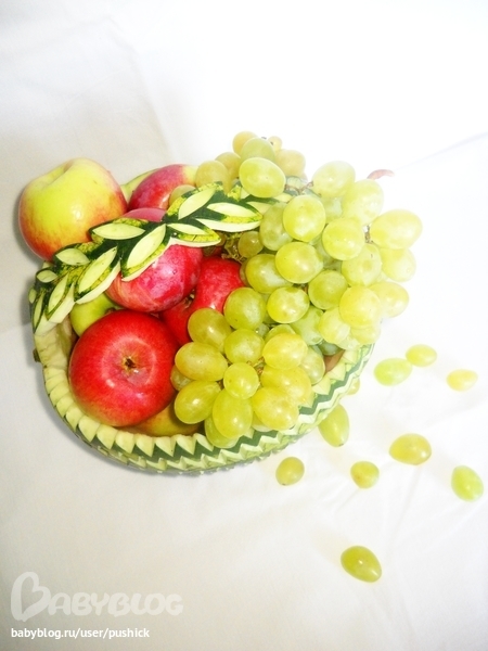 Украшение блюд, КарвингЛетний сезон подходит к своему завершению. И пока овощи и фрукты окончательно не исчезли с прилавков рынка, решила попробовать вырезать корзину для фруктов из арбуза.