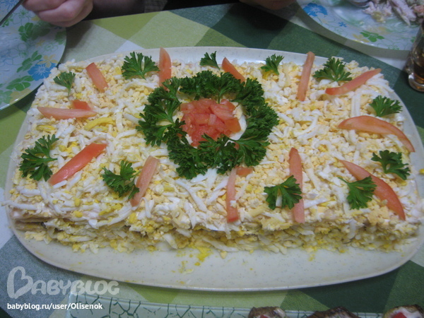 Я единственнок первый корж оставила пустым, чуть смазанный майонезом, побоялась, что сильно размокнет снизу.